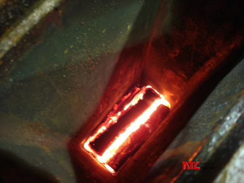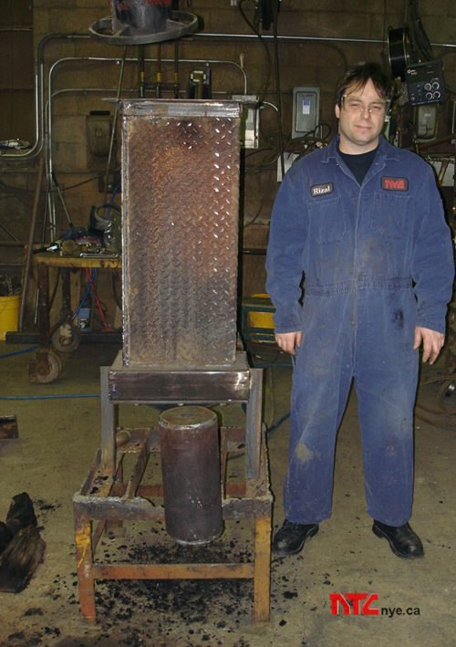 We began experimenting with a rectangular "box magazine" type fuel silo. We wanted the wood to gravity feed to the grate in an orderly fashion just like bullets in a magazine.