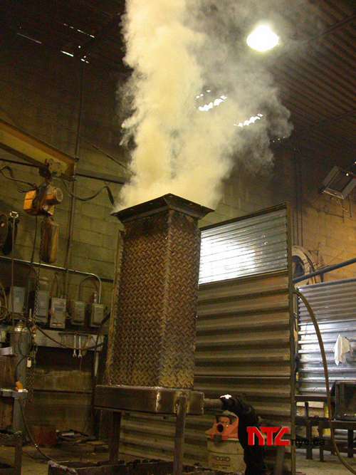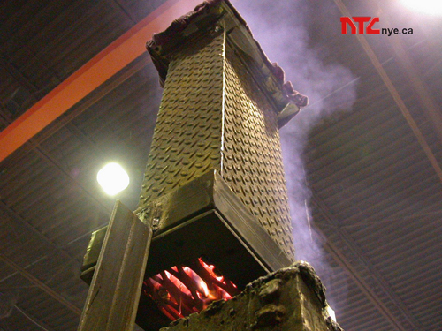 Here we are testing the steel version of the fuel silo. The wood feeds with minimal sticking and hang-ups.