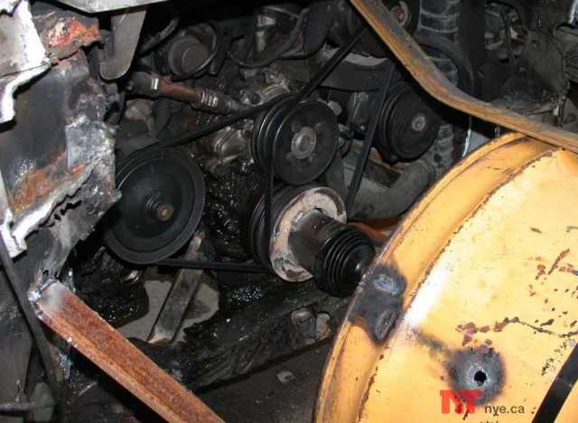 This shows how we used the half shaft to drive the fan directly from the crank.