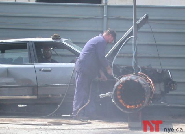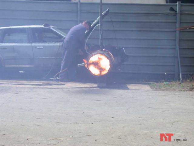 The following is a detailed review of the "Goolie Burner Project". This project was undertaken to prepare for Mark Nye's appearance as an expert on the TLC show "Junk Yard Wars". See the Junk Yard Wars page to see how the show turned out. Click on the pictures to see larger versions.
