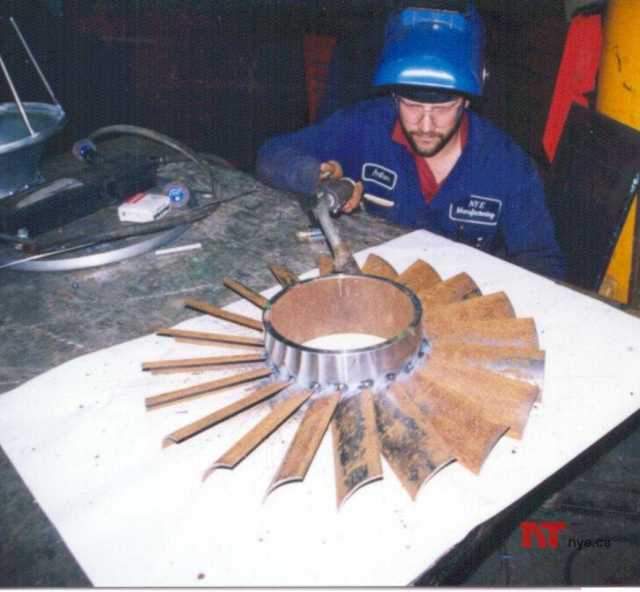 The fan is being assembled and welded by our expert Art. (Same guy who polished Squirt2).