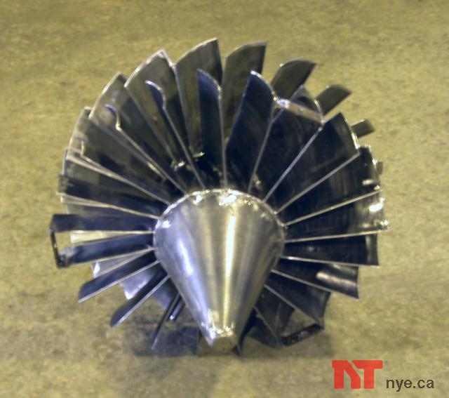 Here is fan #3. We are learning quite a bit here, the hard way I'm afraid! Drive Shaft, Housing, Flame Holder, Stator, Fan and how it will be assembled inside the housing.